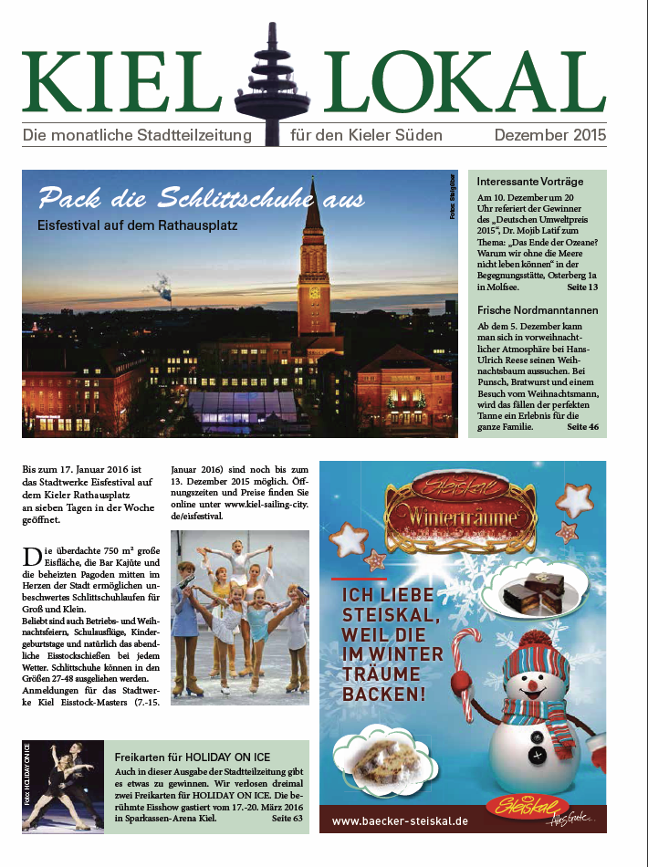 Im redaktionellen Teil lesen Sie, was vor Ihrer Haustür bzw. vor Ihrem Firmentor passiert. Sie erfahren Neues aus den Ortsbeiräten, Vereinen und sozialen Einrichtungen. In jeder Ausgabe finden Sie Sonderseiten über die Kieler Top-Vereinen THW und Holstein. Zusätzlich gibt es immer eine Verlosung mit attraktiven Gewinnen wie zum Beispiel Tickets für die Sparkassen-Arena oder den Hansa-Park, Minikreuzfahrten der Stena Line oder auch mal eine Heißluftballon-Tour.